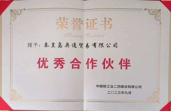 我公司在與中國核工業(yè)二四建設(shè)有限公司合作的海陽基地防沖板及基地民用項目和漳州核電廠1、2#機組鋼結(jié)構(gòu)工程項目中,以專業(yè)的業(yè)務(wù)水平,良好的服務(wù)態(tài)度,及時的交貨能力,有效的保障了兩個工程項目的順利進(jìn)行,在合作過程中得到了中國核工業(yè)二四建設(shè)有限公司高度認(rèn)可,并授予我公司優(yōu)秀合作伙伴稱號。